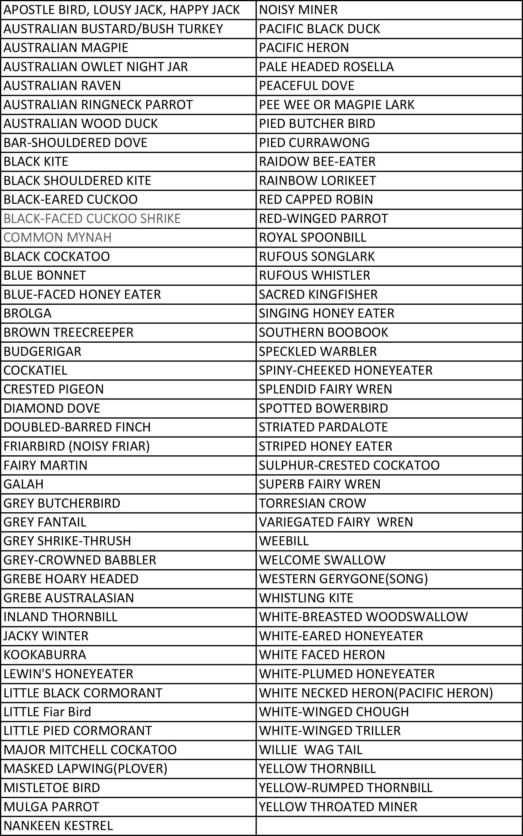 78 species have been identified on and around the 180 acre bush camp site. We also have other locations you can visit in the local area.